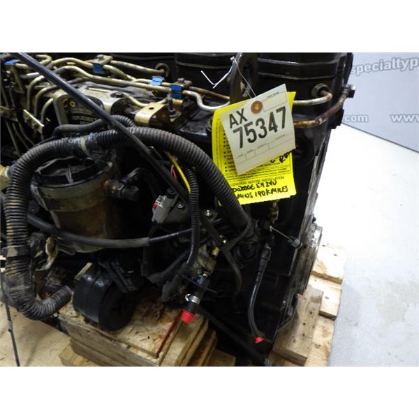 ENGINE CAME OUT OF A 2000 DODGE RAM 3500 CAB AND CHASSIS TRUCK. VEHICLE WAS AN INSURANCE CLAIM. WE WERE ABLE TO RUN AND DRIVE THIS TRUCK. ENGINE FUNCTIONED REALLY WELL. ENGINE HAD LITTLE TO ZERO BLOWBY. ODOMETER REPORTED ONLY 190,008 ORIGINAL MILES BUT CAN NOT BE VERIFIED. ENGINE COMES COMPLETE WITH EVERYTHING AS PICTURED. REAR ENGINE TO TRANSMISSION PLATE HAS BEEN REMOVED.