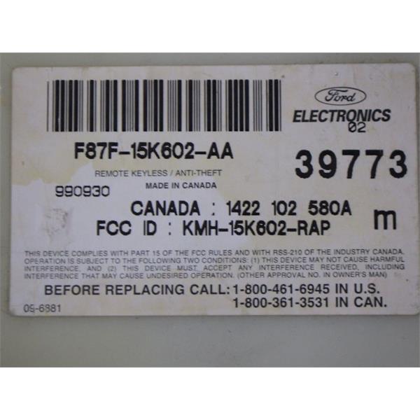 PART NUMBER - F87F15K602AA